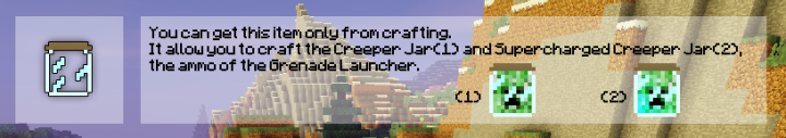 Данный мод добавит экзотическое блюдо и опасный гранатомет, и главным материалом для них послужат пойманные вами криперы. Теперь можно будет знатно повеселится.